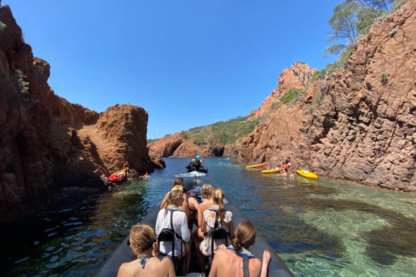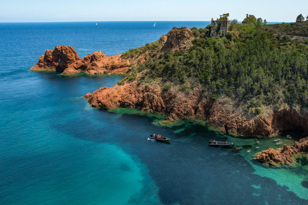 Emprenda una excursión de 2h30 desde Cannes para descubrir las calanques del Esterel. Cuevas, calas y rocas rojas, baños en aguas cristalinas y tesoros arquitectónicos le esperan. A bordo de nuestros Black Tenders, un capitán local le guiará por este entorno único.
